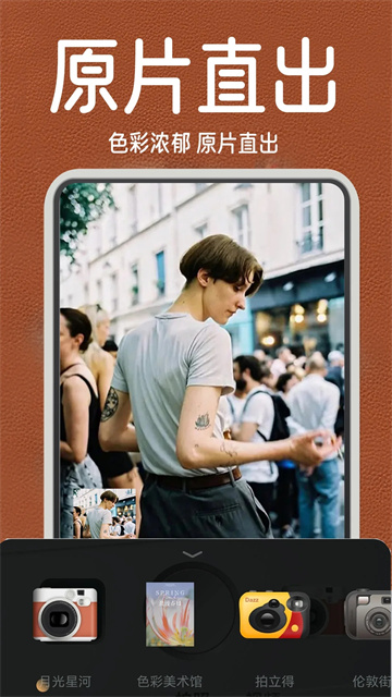 1998复古胶片相机app也被称为Dazz复古相机拍照,这是一款能拍出老照片质感的滤镜相机软件,除了还原胶片机的质感色彩外,还运用影像技术赋予胶片更特别的玩法,添加热门影像元素,如光影、泡泡、bling碎钻等,随手拍出高级感胶片。致美滤镜搭配,营造多样化的整体拍照氛围,每一张都可以是不同风格的自己,轻轻松松拍出高级杂志大片。使用场景全覆盖,自拍、美食、建筑、风景,只需要一个滤镜,瞬间提升照片质感,一键get网红们的刷屏拍照姿势!自拍、街拍、探店、旅行各种场景都能轻松hold住。