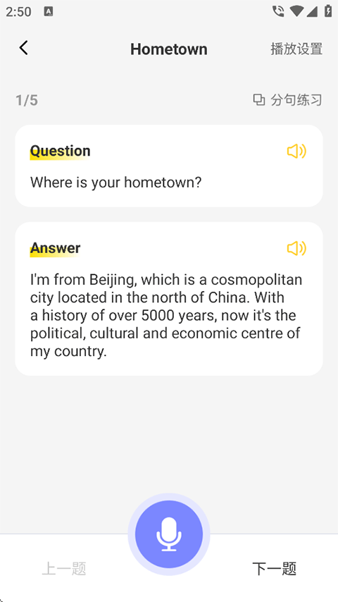 可以让你模拟雅思考试的口语部分,可切换外教、切换话题,模拟真实考试情景,覆盖雅思托福KET\PET等海量题库,基于高分标准案例给出结构化回答,从输入到输出,打造英语口语学习闭环!