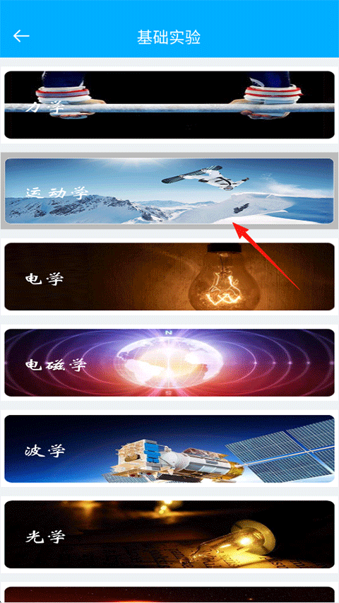 1、打开大实验家APP,首页提供了基础实验、进阶实验与实操演练三个模块,点击基础实验进入;