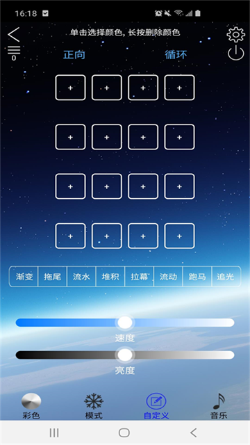 LEDLAMP是一款十分实用的led灯光控制软件,用户可以快速的进行各种文字的设计,玩出自己想要的效果来。此软件可以协助用户轻轻松松调节手机上的照明颜色,适用各种各样颜色的led灯具,可以对其远程操作,并且色盘、色度可调整,方式可轻轻松松转换,照明实际效果比较丰富多种多样,也可使音乐节奏转变,适合聚会活动、演奏会等场合。用户可以在系统上随便设置自己想要的文字,并依据手机上迅速方案设计,以创造您想要的预期效果。需要的朋友不妨下载试试看!