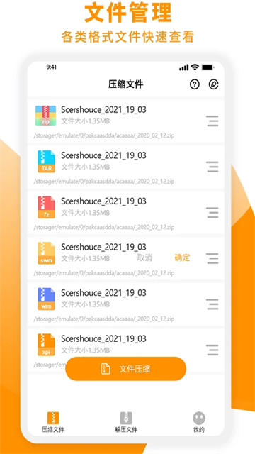 1、支持解压Zip, 7z, RAR, ZIPX, TAR, win,swm,zipx,jar,xpi,obt,ods,epub,等多种文件。