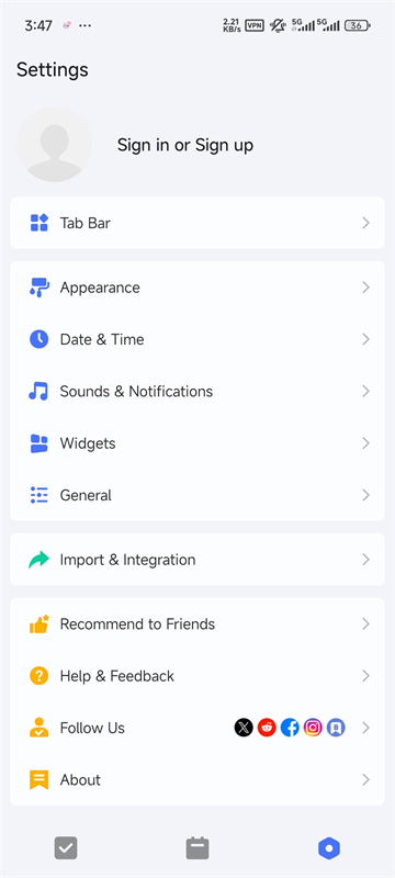 ①下载并安装TickTick,打开软件,点击右下角的设置。