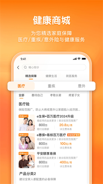 APP在线3步投保!日常医疗、重大疾病、意外伤害等多种保险产品全都有。好产品,让您和您的家人保障无忧。