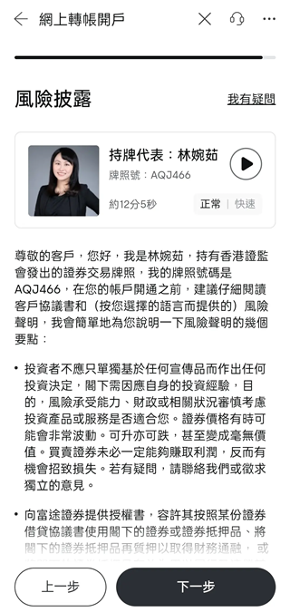 由持牌代表为您语音说明所选帐户在交易中的主要风险,您可放大手机音量收听。