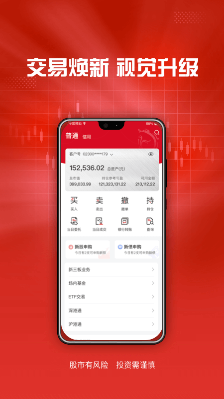 人性化的页面设计,更加便捷的操作体验让您投资体验从此变的简单。委托交易、理财产品认购等一应俱全。