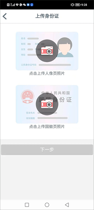 3、按要求拍摄身份证正反面照片,进行上传,上传确认时请认真核对个人身份信息。