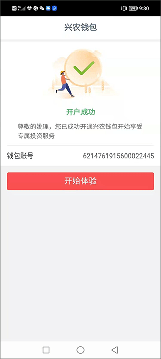 5、申领成功,点击“开始体验”即可使用“兴农e钱包”进行交易支付了。