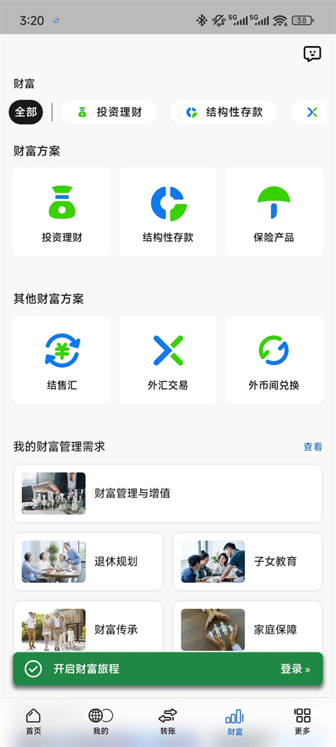 6、除此之外,还可以使用投资理财、结售汇、外汇交易、外币间兑换等功能或者查询退休规划、子女教育等资讯