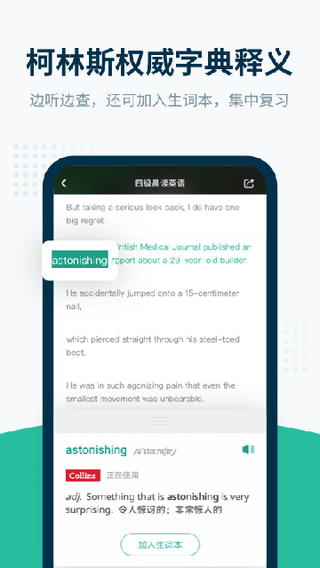 另外,软件的泛听练习和精听练习都很实用,特别是针对考试真题的设计,让我觉得学习效率提高了不少。单词拼写功能也挺棒的,遇到不会写的还能有提示帮忙。总体来说,这款app对英语学习者来说是个不错的选择,尤其是需要提升听力口语的同学,肯定能用到很多功能。