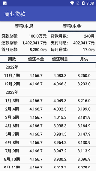贷款计算器app是一款利率标准,专业,精准,实用的贷款计算器,可以根据您的贷款金额、年限等,精准的计算出您的账单详情,包括每期还款多少,首次还款日期什么时候,利息加本金总共要还多少钱,非常的方便快捷,同时,贷款计算器app还支持根据贷款总额或根据单价、面积、按揭成数来计算,输入住房面积和单价或总金额,点击“计算”按钮即可计算出商业贷款、公积金贷款或组合贷款等不同贷款方式下的首付额、贷款额、支付利息、还款等贷款结果,准备计划买房的你赶快来计算看看吧。