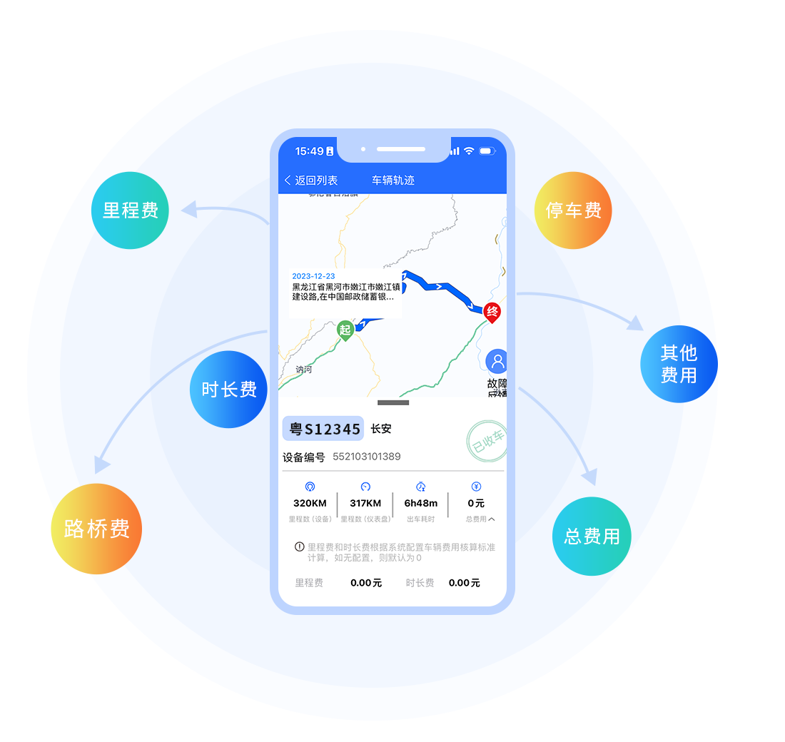 车辆行驶的轨迹、停车地点及时间会通过GPS实时记录,用于核对司机时间段工作的凭证。