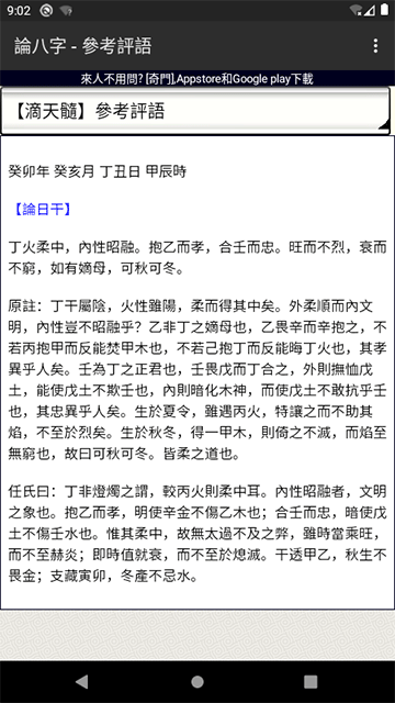 我个人觉得这个App对于喜欢研究八字的人来说是个不错的选择,功能全面且操作相对简单。虽然我对命理不太了解,但能感受到这款软件的专业性和细致程度。如果你对八字命理感兴趣,可以试试看,或许会对你的生活规划有所帮助!