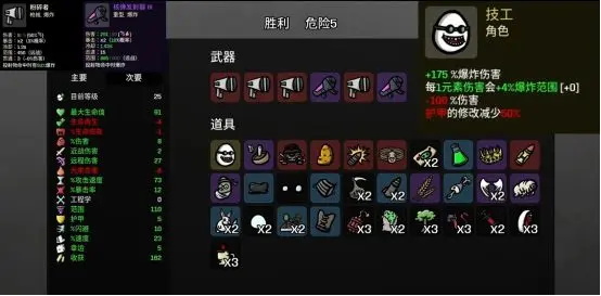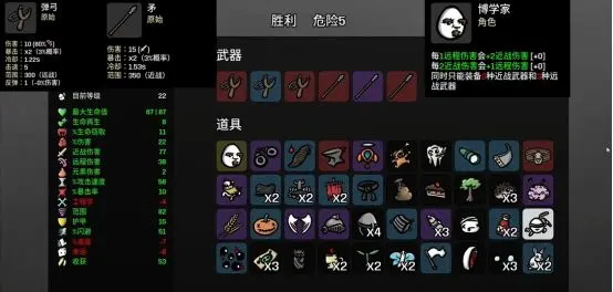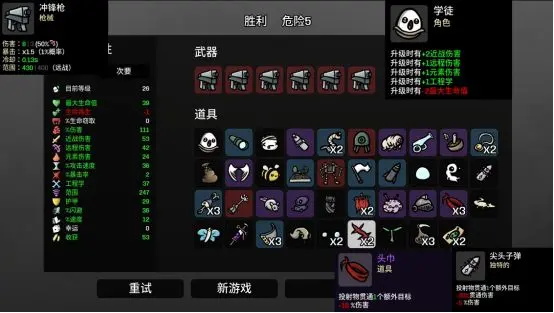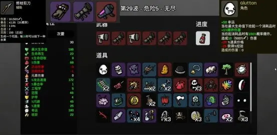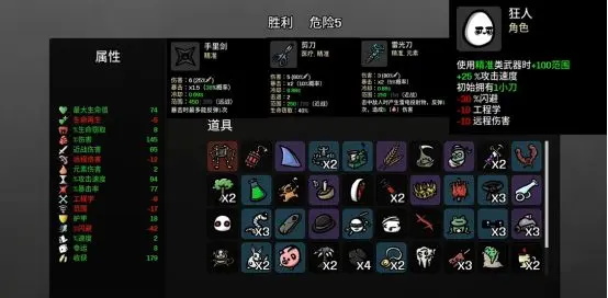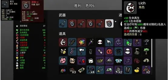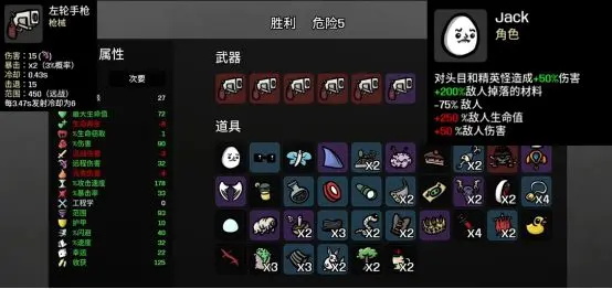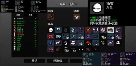 受到攻击时加5%伤害,直到敌戏结束,遇到每秒扣一血道具要拿,每秒扣一滴血,伤害会暴涨恐怖