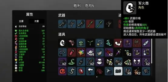 每持有白色武器减15%伤害减15%攻速,每次有不同的白色物品减2点最大生命,不要拿白色的物品白色的道具,白色的武器不要出现在战斗里,比如有两件白色武器,就合蓝色再进入战斗