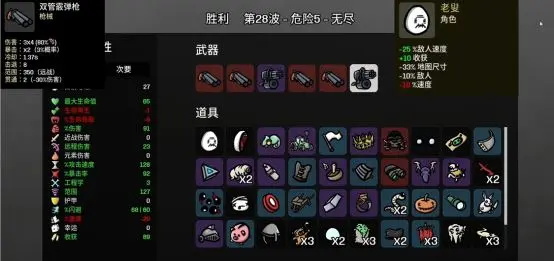 每持有一件武器,就会减5%的伤害,初始加20%伤害