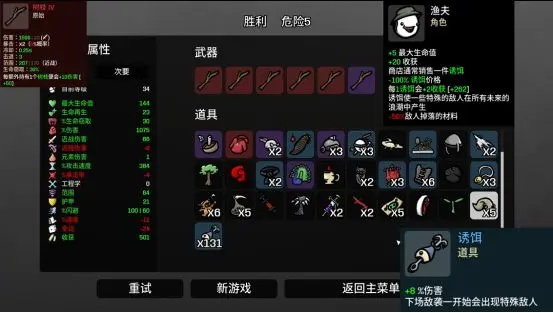 商店每次刷新,有诱饵,诱饵加8%伤害,负面效果下次敌袭一开始会出现特殊的敌人