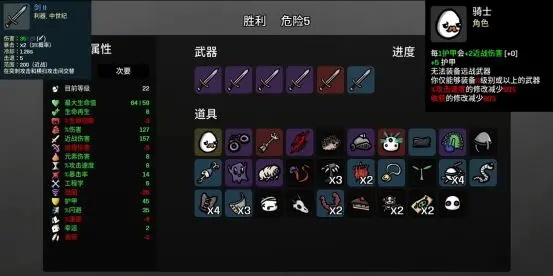 每1点护甲加2点近战伤害,初始加5点护甲,无法装备远战只能拿近战,仅能装备二级以上的武器,攻速修改减少50%收获修改减少80%