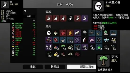 初始选树枝,树枝便宜并且前中期较强,做过渡,也可以选弹弓用到结束,也可用螺丝刀,螺丝刀是范围伤害