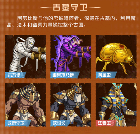 他曾是这片绝地的守护神,以神力和智慧庇佑古国的子民,带给沙漠古国繁荣和生机。然而经历时代的变迁臣民对他信仰日益减少,阿努比斯的力量逐渐消弭。直到时空裂隙出现,魔神蛊惑他利用幽冥力量和魔晶,吞古国的子民,将所有生灵变成没有思想的行尸,以此获得超越过往的服从和忠诚……