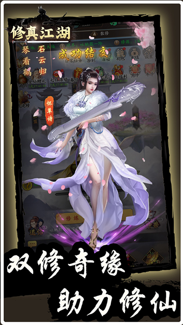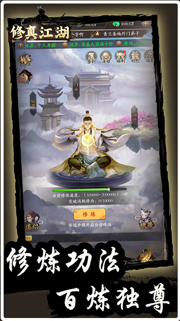 修真江湖0.1折版是一款竖版修仙手游,打工人福音!刚开局就能享受1折充值优惠,直接体验氪佬的快乐。游戏画风超绝,水墨丹青勾勒出仙气飘飘的世界,玩法也很丰富:修炼、法宝、妖兽培养样样都有。