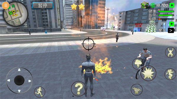 冰封城市英雄是一款第三人称视角的沙盒角色动作类游戏,也叫“暴风雪超级英雄”,游戏采用了出色的3D建模技术,游戏的场景看起来非常的真实,基于真实3D引擎所制作,高清的画面,精致的人物模型,给玩家带来沉浸式的战斗效果。游戏玩法与“超凡蜘蛛侠青蛙版”非常相似,在游戏中你可以行侠仗义,打败面前所有的敌人,保护城市,使用你自己的冰霜魔法,为敌人带来毁灭,享受战斗的快感,不同之处就在于冰封城市英雄游戏所有技能都是寒冷的力量,包括冰冻、滑行、攀爬等等,可以感知和影响气象能量形式,从小的天气变化如风和雨到大的气象现象如暴风雪、闪电甚至龙卷风等,能量再被充分利用的时候,还可以产生太阳风等现象,支撑你的身体在空中飞翔。