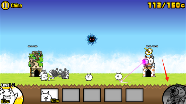 敌人的城堡终于突破2W到达25000了,这一关小编建议尽量把所有兵种全部升为最高级,特别是巨神喵,巨神喵升级为喵大帅后,不仅能抗而且还很能打,基础兵种的意义现在变成拖延时间且累计资金,这一关的敌人还是老对手,从喵颈鹿开始出兵才有可能获胜,喵大帅出兵2-3只就够了,其他的交给喵UFO和喵龙以及喵鲸。