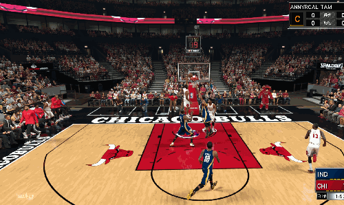 如果跳起的瞬间,发现对方亦腾空,你还可以有挽救这个进球的机会,那就是空中改变投篮,在扣篮或上篮过程中,在空中向任何方向推动右摇杆。那么可以将上篮变为假投或者是一个大风车换手上篮。