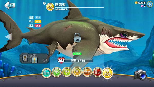 1、可以收集各有7种不同大小的20类鲨鱼品种,扮演敏捷的双髻鲨,甚至到著名的大白鲨!