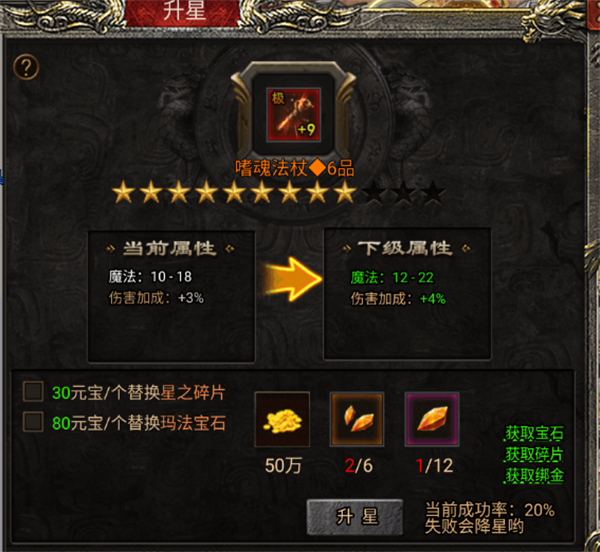 第二,升星也需要玛法宝石和星之碎片,当然在你元宝充足的情况下,你可以用元宝代替星之碎片和玛法宝石,现在就来详细跟你们说下怎么获得这些材料吧