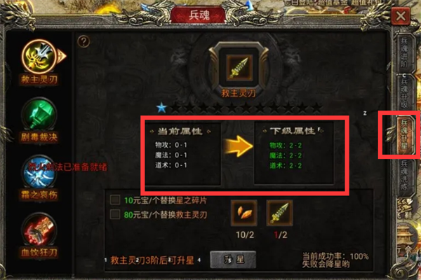 3、兵魂升星:这个需要兵魂进阶达到3阶后可以升星,据说升到7星还能获得额外的双防呢