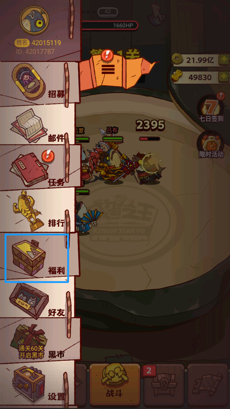 4、然后回到战斗页面,快速点击屏幕攻击敌人,收集它们掉落的金币,继续升级自己以应对更强的咸鱼们;