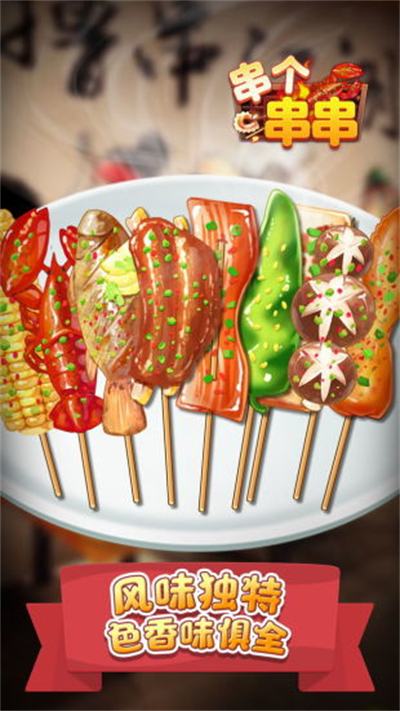 串个串串是一款以制作各种美味烧烤串为题材的趣味模拟经营游戏,简洁卡通的游戏画面,轻松欢快的背景音乐,再加上丰富的关卡设计,让玩家体验无限趣味的穿串烧烤玩法。游戏中玩家是一名夜市的烧烤摊老板,经营着一家串串店,你可以通过解锁更多的食材,让串串店的种类变得更加丰富,然后根据顾客的要求制作各种各样的烧烤食材,满足大家的口味需求,吸引更多的顾客,扩大自己的带有特色的串串店,获取更多收益。玩法也很简单,在本串串店中有豆腐,鸡翅,火腿肠,烤鱼,茄子等数十种菜品,你只需要将相同的菜品串到一起,就能升级成香喷喷的美味串串。