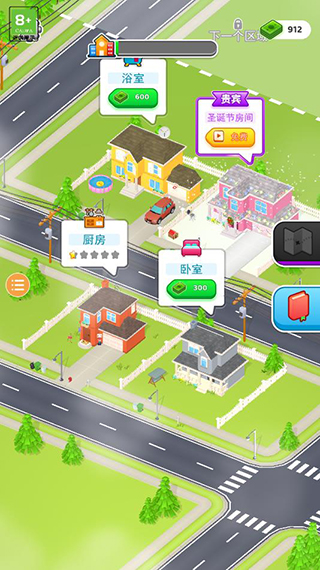6、游戏场景丰富,有浴室、厨房、卧室、圣诞节房间等等,随着游戏的进行还能解锁更多区域;