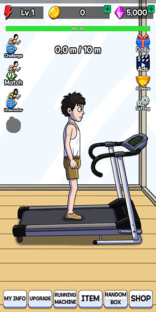 1、玩家进入游戏,可以通过【点击屏幕】来控制角色在跑步机上进行奔跑。