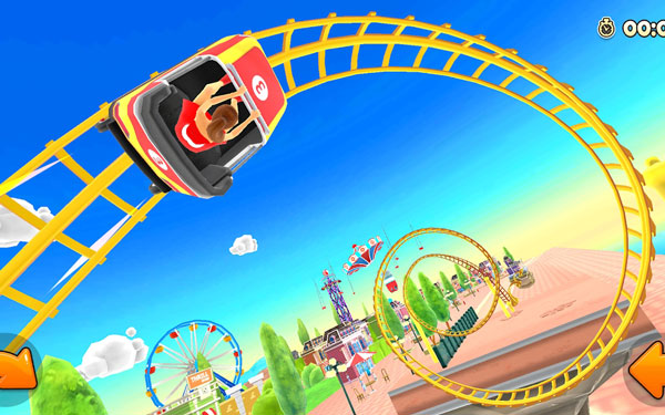 游戏里的内容真的很多,有2个大主题公园世界,40多种超酷的过山车模型,比如独角兽和海豚这些有趣的动物造型,还有25种个性服装可以选择。你可以打造自己的角色,玩得不亦乐乎!游戏还自带关卡编辑器,可以自己设计赛道,感觉就像一个创意设计师一样。