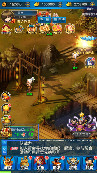 新手也能轻松上手,完成主线任务和挑战闯关即可获取大量奖励。此外,游戏还提供多种福利活动,包括登录奖励、充值卡领取以及等级礼包等,新人玩家可以轻松获得百万元宝和满星吕布这样的强力武将。