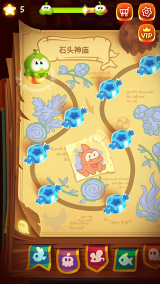 2、在冒险过程中可把Om Nom变为5种魔法生物