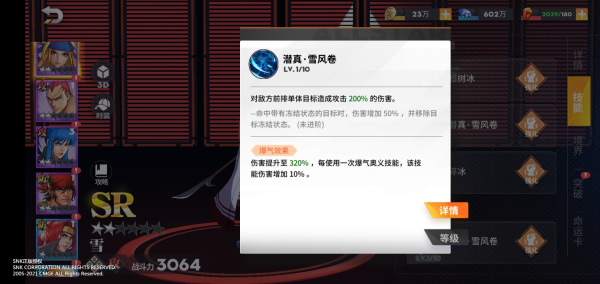 2.奥义——潜真·雪龙卷:奥义技能可以对敌方的前排单体目标造成大量伤害。