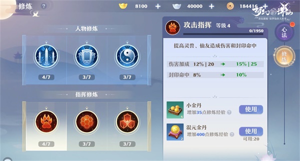 在修炼方面,道哥推荐大家优先点满自身所需的主属性修炼,然后再点【攻击指挥】修炼提升灵兽、仙友输出,以降低灵脉挑战、仙友挑战的攻略难度。