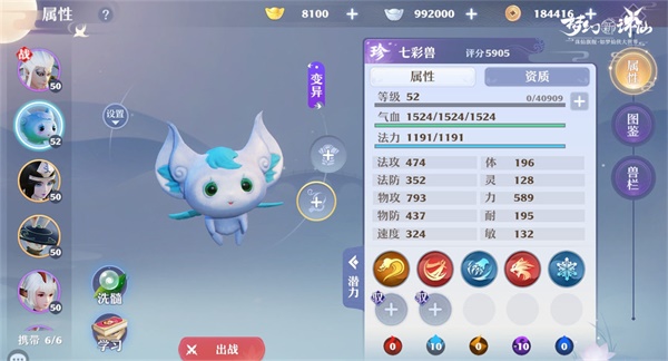 在完成【夺得龙珠】主线任务,达到35级后,即可解锁【珍兽挑战】玩法,挑战成功获得珍稀灵兽【七彩兽】,作为55级前的过渡期强力物理宝宝,道哥建议道友们可以在前期重点培养这位小家伙,它的强度一定不会令你失望~