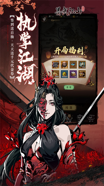 游戏特色包括沉浸式武侠剧情、多样的玩法如武林擂台、门派踢馆、闯阵等,还有丰富的侠客搭配系统和宝物、御印、专属装备元素。对于喜欢武侠手游的玩家来说,《墨武江山》无疑是一个值得一试的选择,尤其是它的福利和放置玩法非常吸引人。如果你是武侠迷或对放置类游戏感兴趣,这款游戏可能会让你爱不释手!