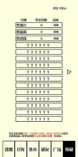游戏里的小吃种类很多,每种小吃制作材料、时间和价格都不一样,得根据自己的仓库容量来决定该不该进货,这个过程还挺有挑战性的。特别是研发新菜后,不仅能卖还能给同类菜品加buff,挺有成就感的。