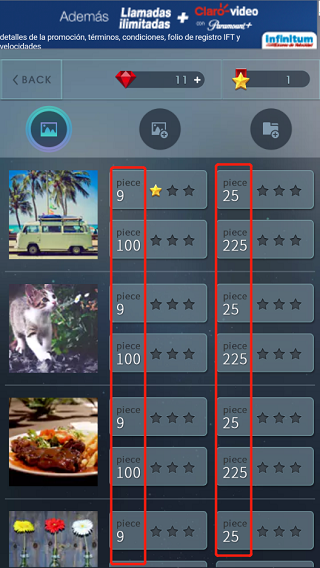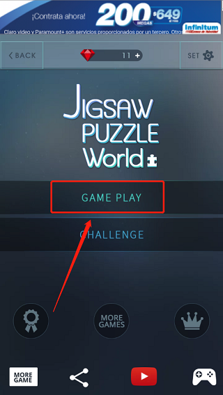 2、选择游戏关卡,每一个关卡上的数字代表本关分成了多少个拼图,