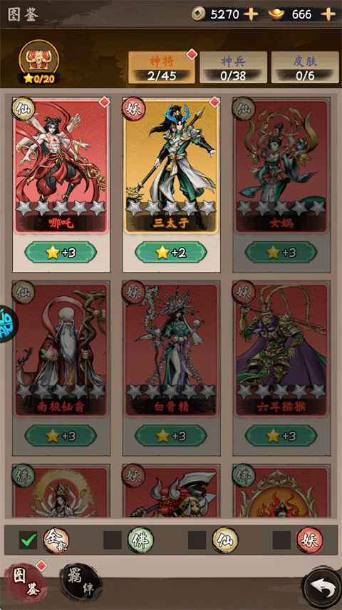 3、福利党前期可以游戏练孙悟空,小氪前期推荐可以从SSR中选择哪吒,白骨精等核心进行培养,大佬可直接开局进行满配阵容,更多搭配和推荐可以在世界频道聊天中跟大家多多交流召唤活动中优先招募最划算出高级极品SSR等相关武将;