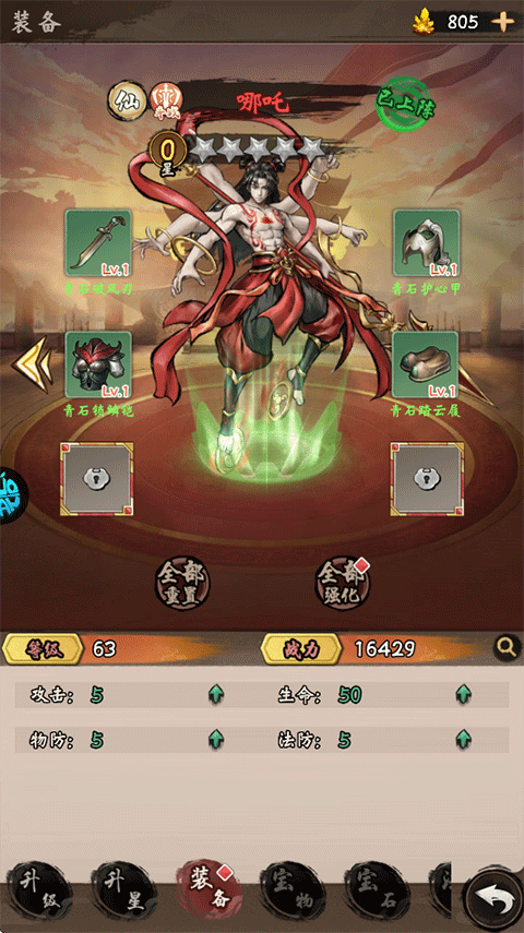 5、还有更多武将养成功能:宝石,宝物,法阵,天赋,进阶,神器等功能,能让后期的战斗力大幅度提升!