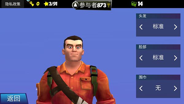 游戏画风很可爱,颜色鲜艳大胆,一开始看起来很漂亮,但时间久了可能会有点审美疲劳。操作不够流畅的话可以调灵敏度。角色还能自定义头部、身体和裤子,挺有个性的。