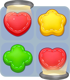 纽扣被线连接在一起,它们成组出现。在纽扣旁匹配元素或引爆加速道具可以拆除纽扣上的线,从而解开纽扣。当一串纽扣上的一颗被解开时,整串纽扣都会被消除。仔细观察每颗纽扣属于哪一组,这会帮助你更好地解开它们。