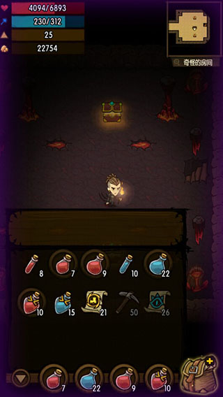 12、洞窟内会不定期的出现闪星星的墙,点开则可进入神秘的房间,房间内有宝箱和水晶宝箱,水晶宝箱需要花费水晶打开;