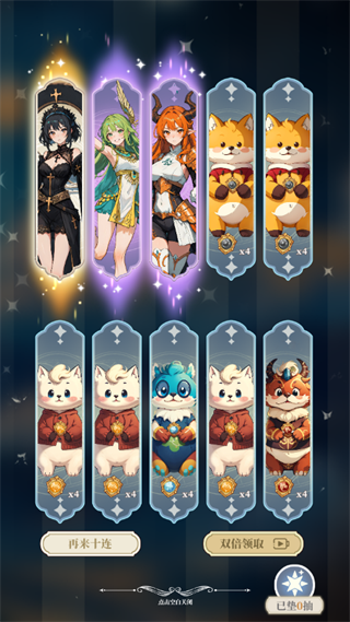 开启三百抽挑战之后,仅能进行十连抽,每次十连抽会根据抽卡结果获得积分,累计积分达到75分以上即可获得免广卡。
