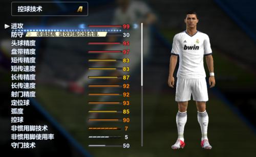 技术:传球数值高,射门感觉有点飘,控球盘带灵活程度较好,技能不多不少